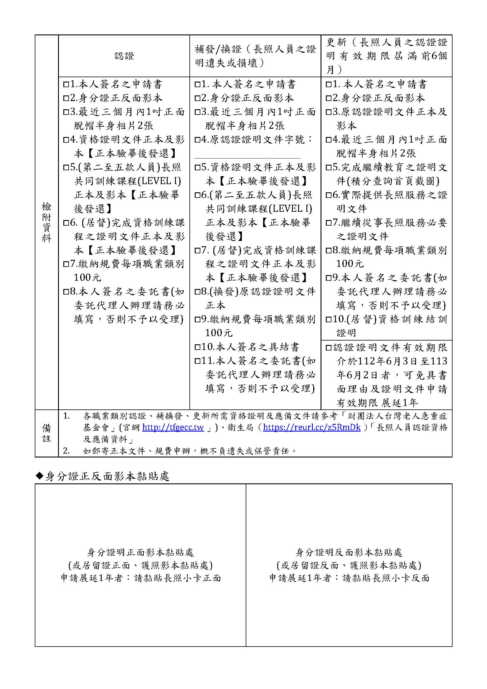 2.長照服務證共計5大款、11類,請先閱覽「長照人員認證資格及應備資料」,攜帶相關證件到場辦理
